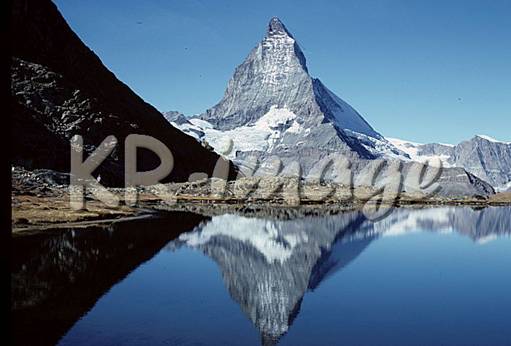 Wallis. Im Riffelsee spiegelt sich das Matterhorn.