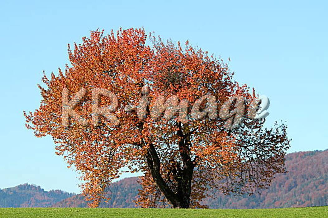 Kirschbaum im Gebirge mit wunderschönem Herbstlaub